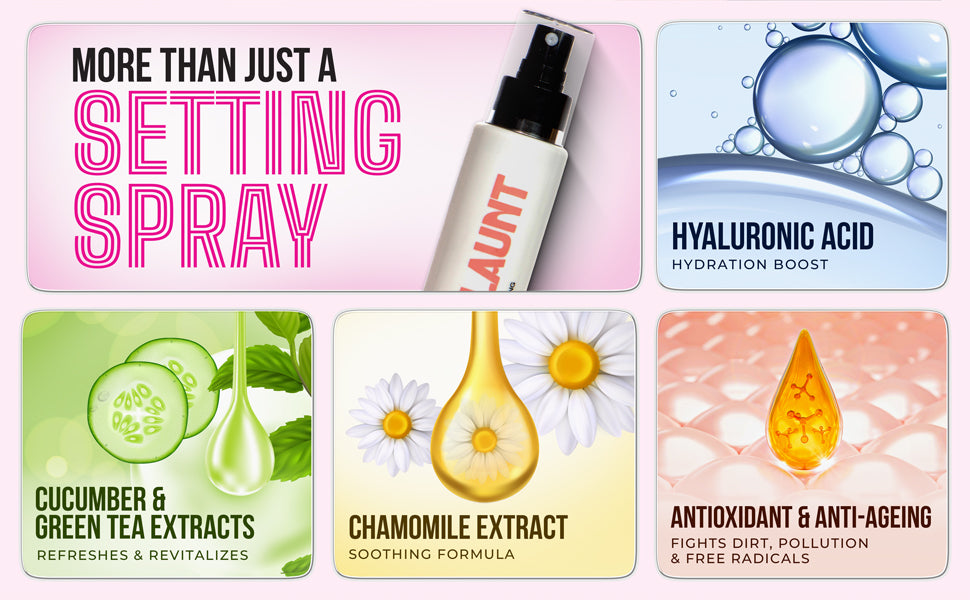 - Fix & Flaunt: Locks in the moisture and helps the makeup & Skincare stay all day long.