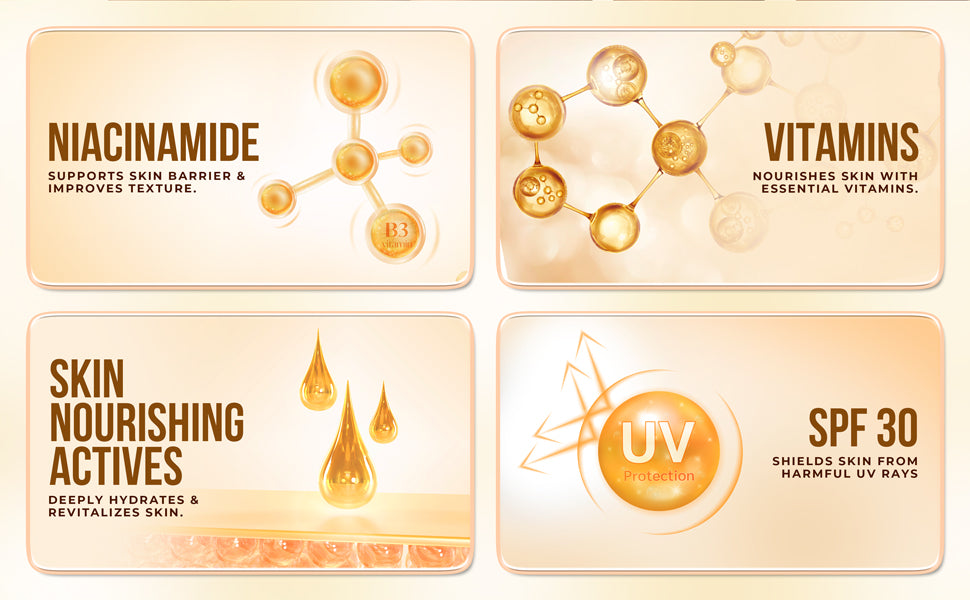 Ethylene Diamine Tetraacetic Acid, Allantoin, Propanediol, Niacinamide, Dimethiconol, Triethanolamine, Glyceryl Monostearate, Cetostearyl Alcohol, PEG 10 Dimethicone, Isononyl Isononanoate, Cyclopentasiloxane (and) PEG/PPG -18/18 Dimethicone, Cetearyl Alcohol (and) Cetearyl Glucoside, VP/Eicosene Copolymer, Caprylyl Methicone, Phenyl Trimethicone, Tocopherol, Talc, Titanium Dioxide, Red Iron Oxide, Yellow Iron Oxide, Brown Iron Oxide, Butylene Glycol, Phenoxyethanol.
